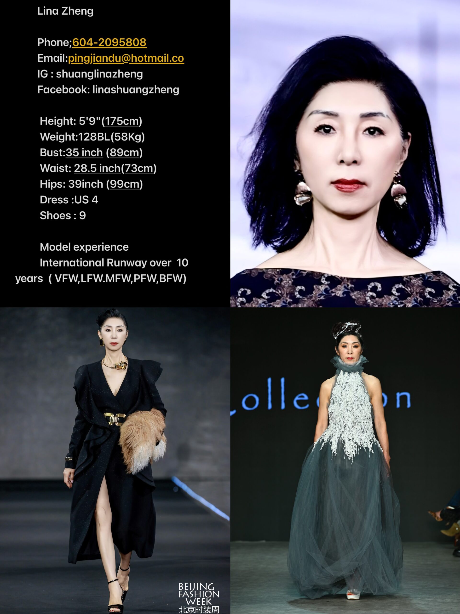 Runway model More than ten years.Vancouver,London‘Paris,Milan,Beijing fashion week model